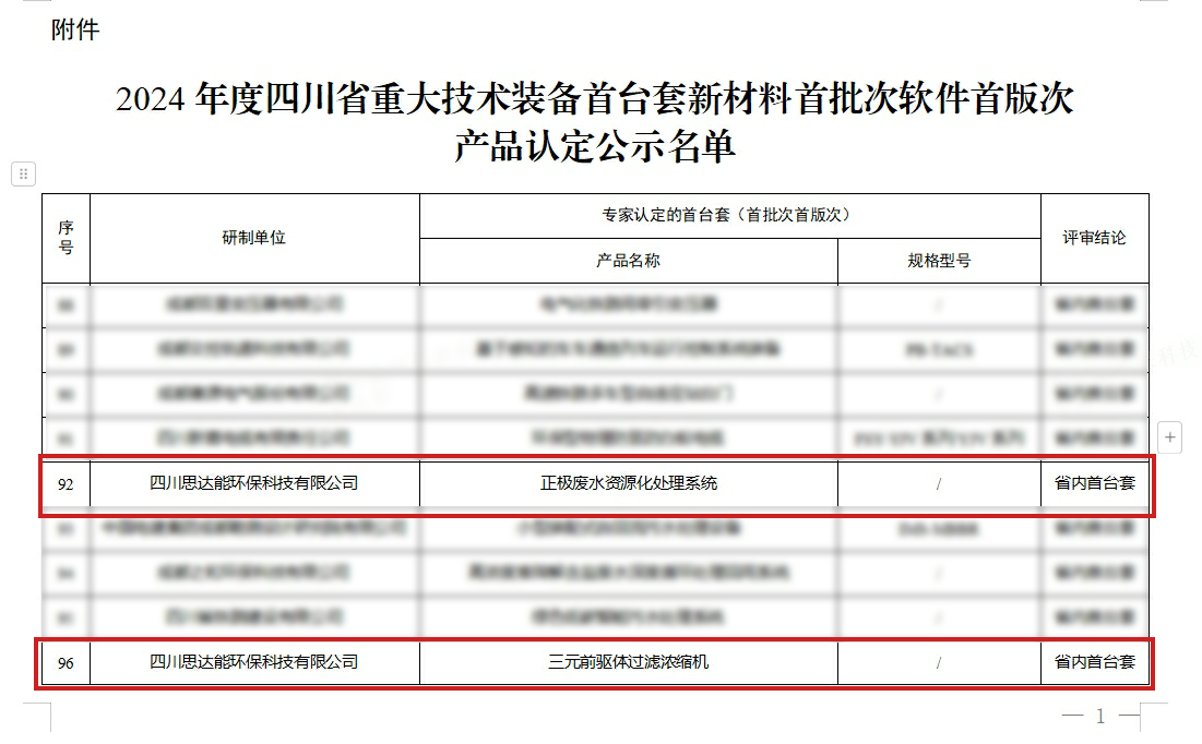 在四川省重大技術(shù)裝備首臺套認(rèn)定評選中,思達能環(huán)保的兩項杰出創(chuàng)新技術(shù)—正極廢水資源化處理系統(tǒng)和三元前驅(qū)體過濾濃縮機,成功脫穎而出,這一榮譽標(biāo)志著思達能在對應(yīng)技術(shù)領(lǐng)域取得重大飛躍。