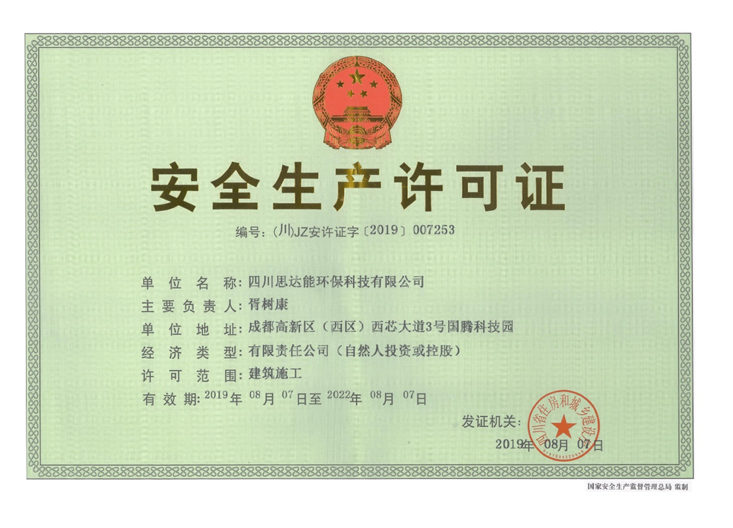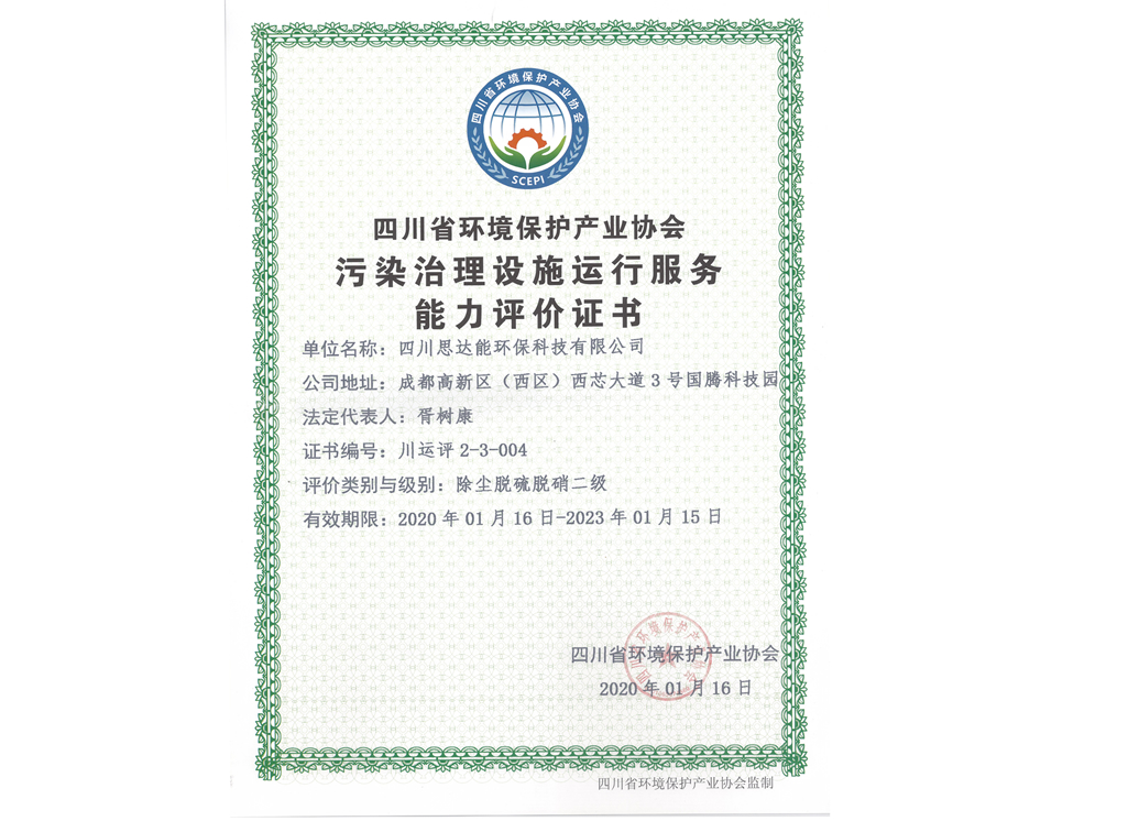 The company has two general contracting qualifications: Grade III General Contracting of municipal public works construction and grade III professional contracting of environmental protection works. Three class A qualifications: air pollution control, water pollution control and environmental protection equipment manufacturing. Three class B qualifications: comprehensive utilization of resources, noise and vibration, and solid waste treatment and disposal. The company has the evaluation certificate of the operation service capacity of pollution control facilities, "industrial waste gas treatment class II", "industrial wastewater treatment class II", "domestic sewage treatment class II" and "dust removal, desulfurization and denitration class II".